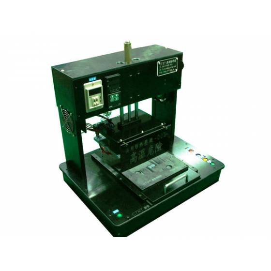 說明:依產品特性設計專屬的熱壓機,可使用溫控裝置設定溫定,計時器設定欲加壓秒數後將產品送入後壓下啟動開關即可進行熱壓。